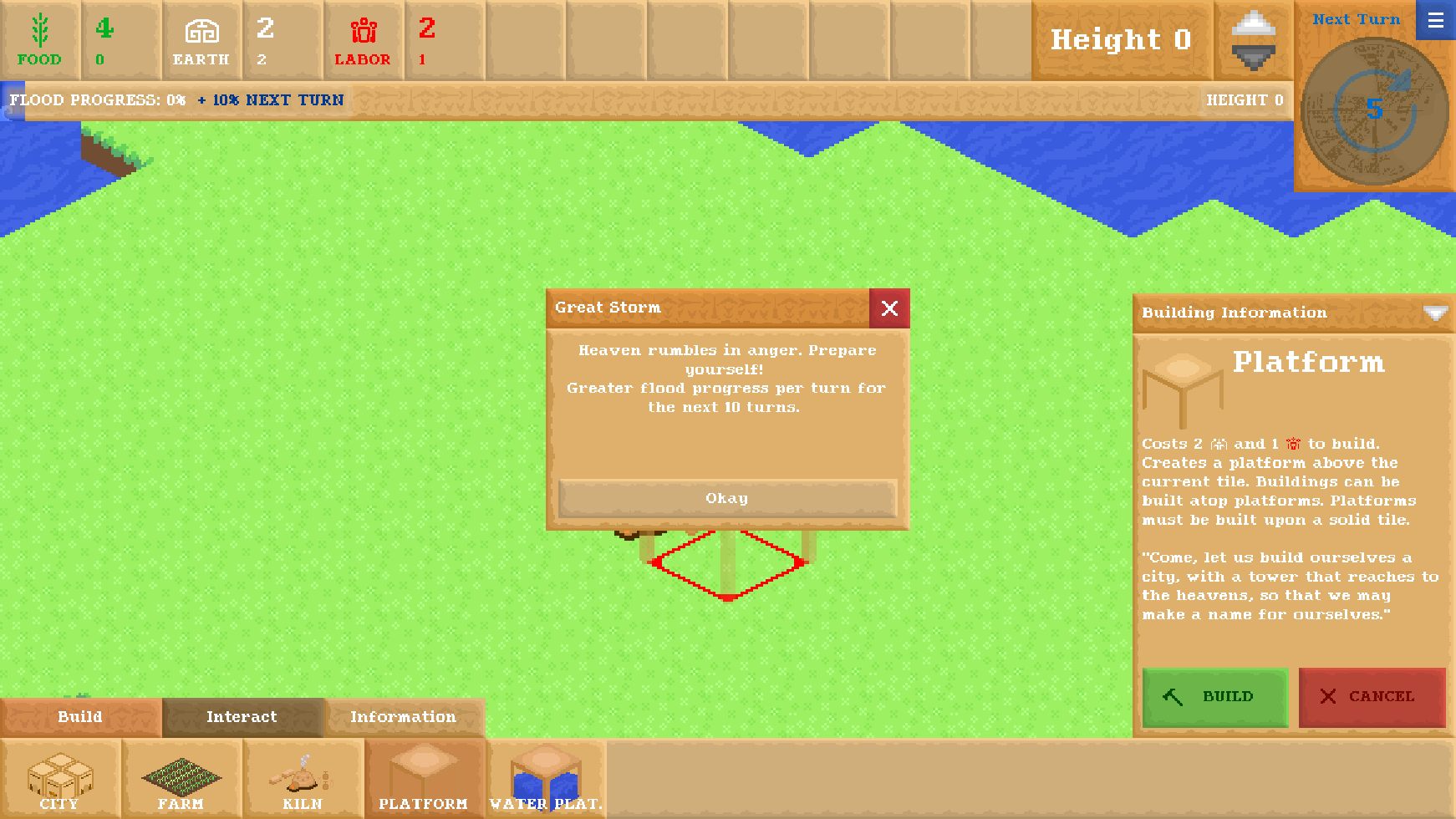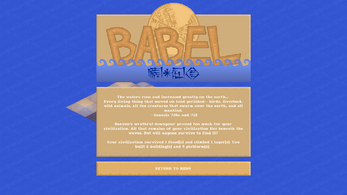 Babel is a single-player tile-based strategy game where the goal is to survive a catastrophic flood by building higher and higher up.